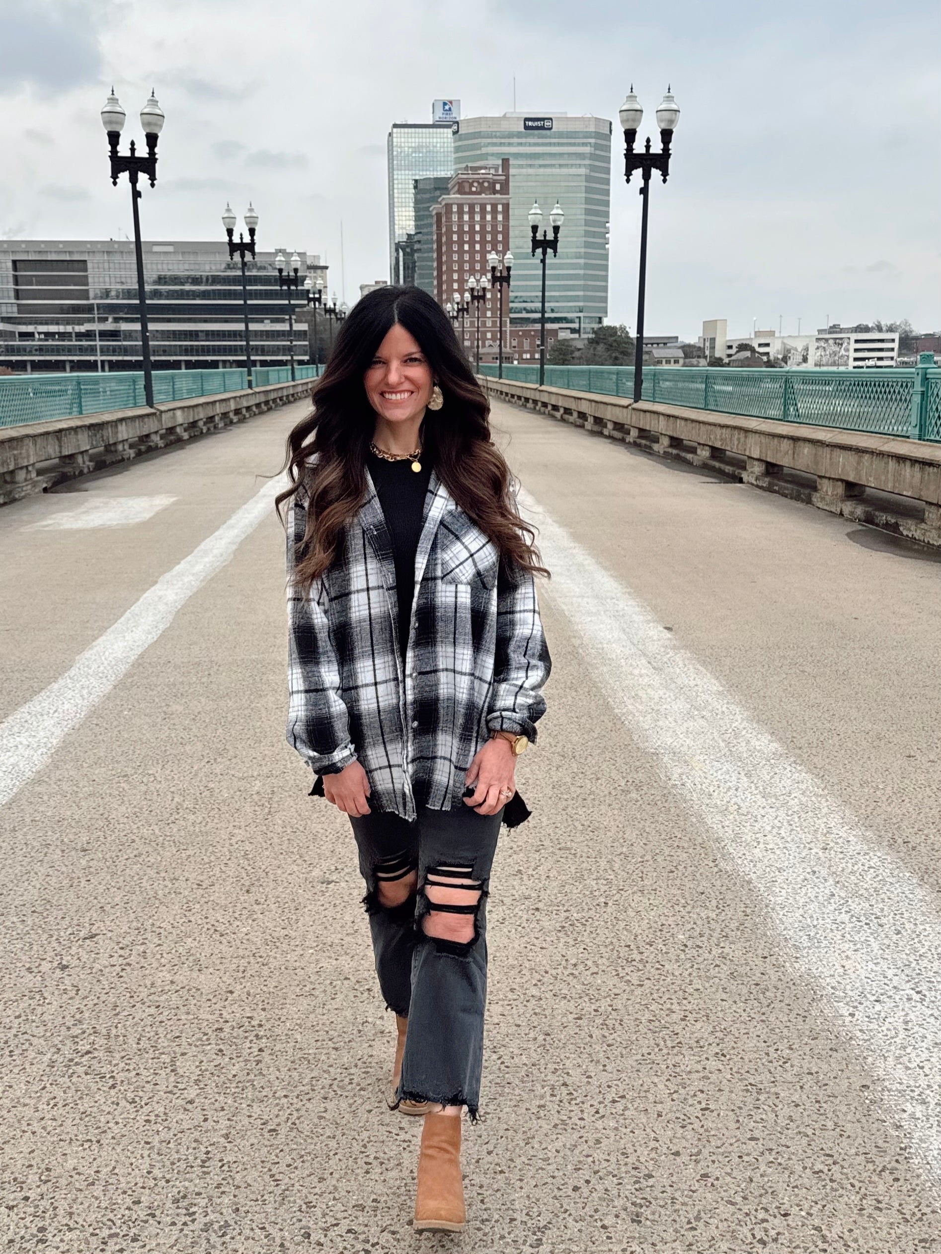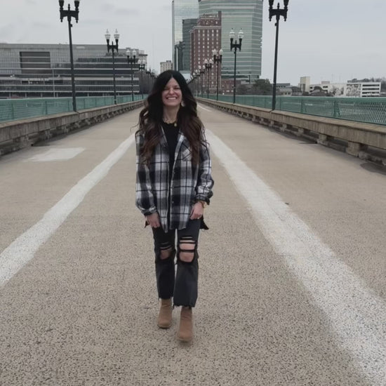 This frayed tunic flannel is the ultimate laid-back slightly oversized staple with a little edge. Designed in a longer tunic length for easy layering, it features a classic plaid pattern with raw, frayed hems that give it that perfectly worn-in look. The fabric has a soft but structured feel thicker than a typical flannel making it great for transitional weather. Finished with a relaxed fit, button front, and cuffed sleeves, this piece is made to throw on and go.