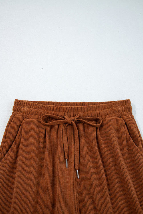 Our Chestnut Comfort Cord Joggers are the definition of throw-on-and-go style. Designed with a soft ribbed corduroy texture, an elastic waistband, and an adjustable drawstring, these pants give you comfort without looking sloppy.